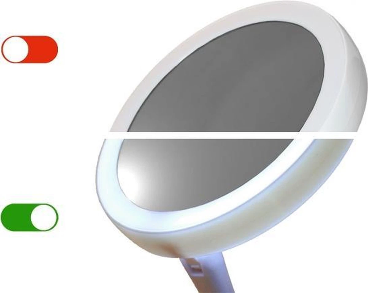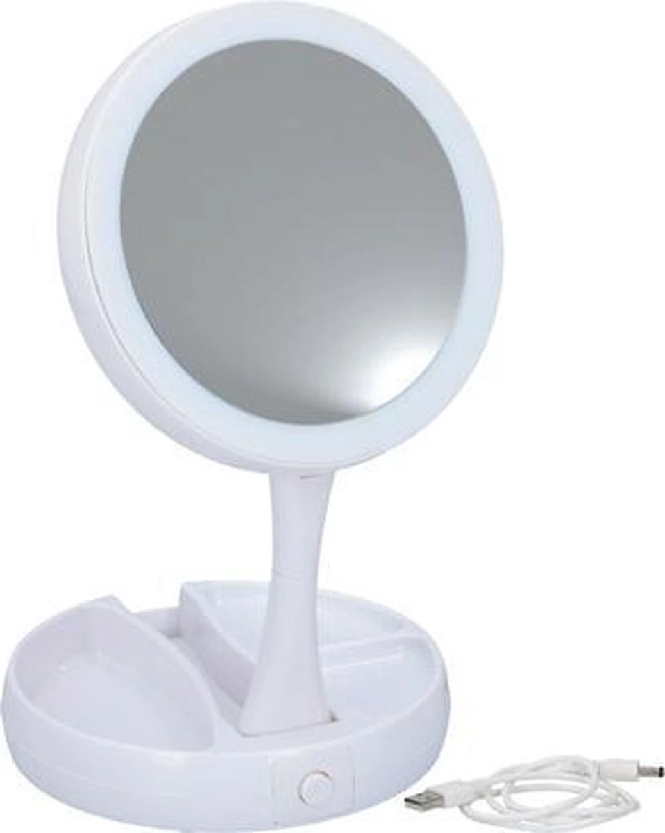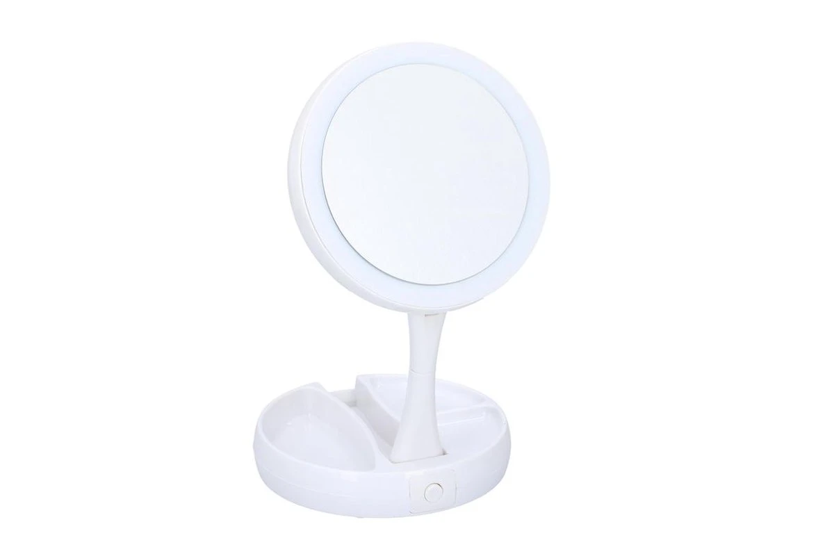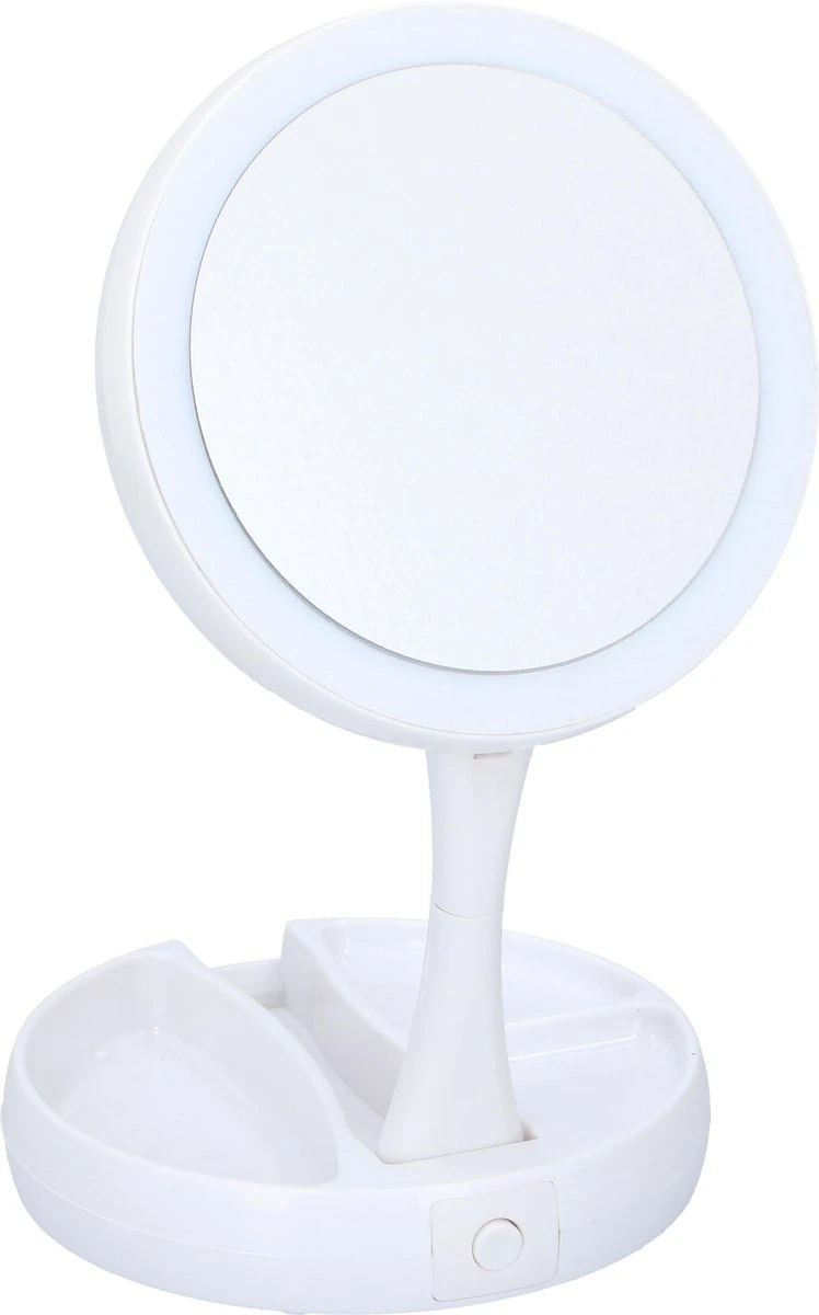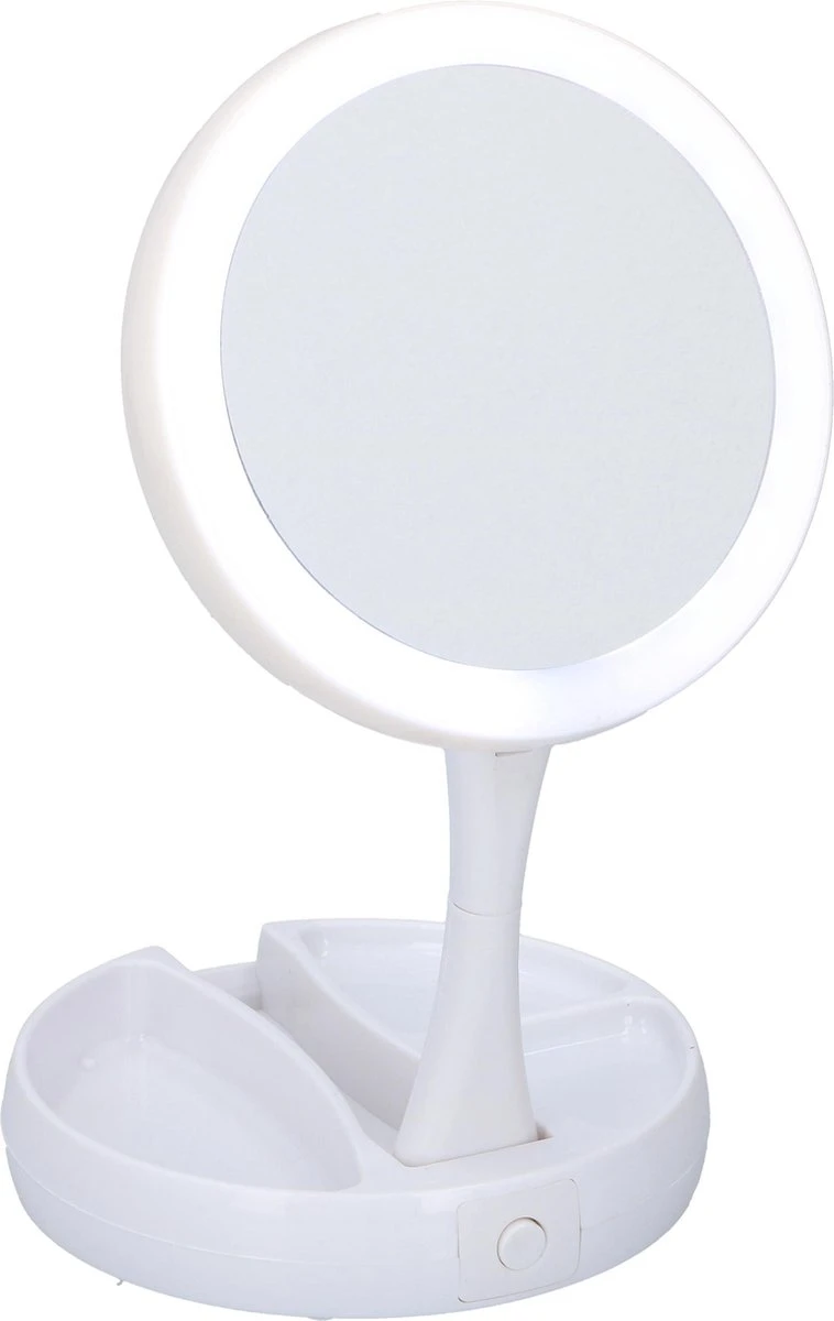 Grundig Opmaakspiegel – LED-verlichting – Opbergruimte Sieraden – Gewone En Vergrotende Spiegel – Wit