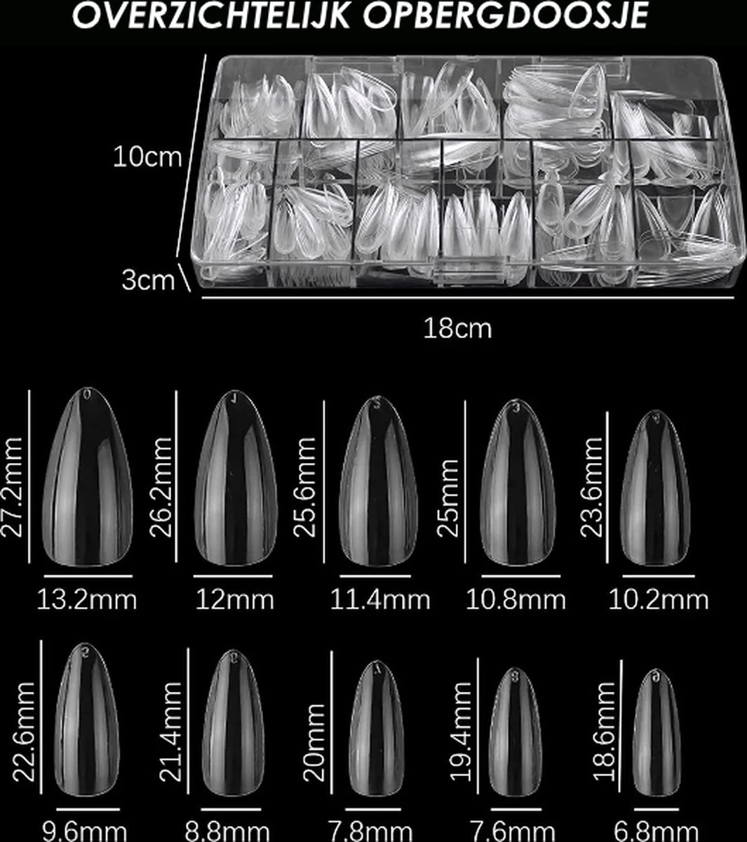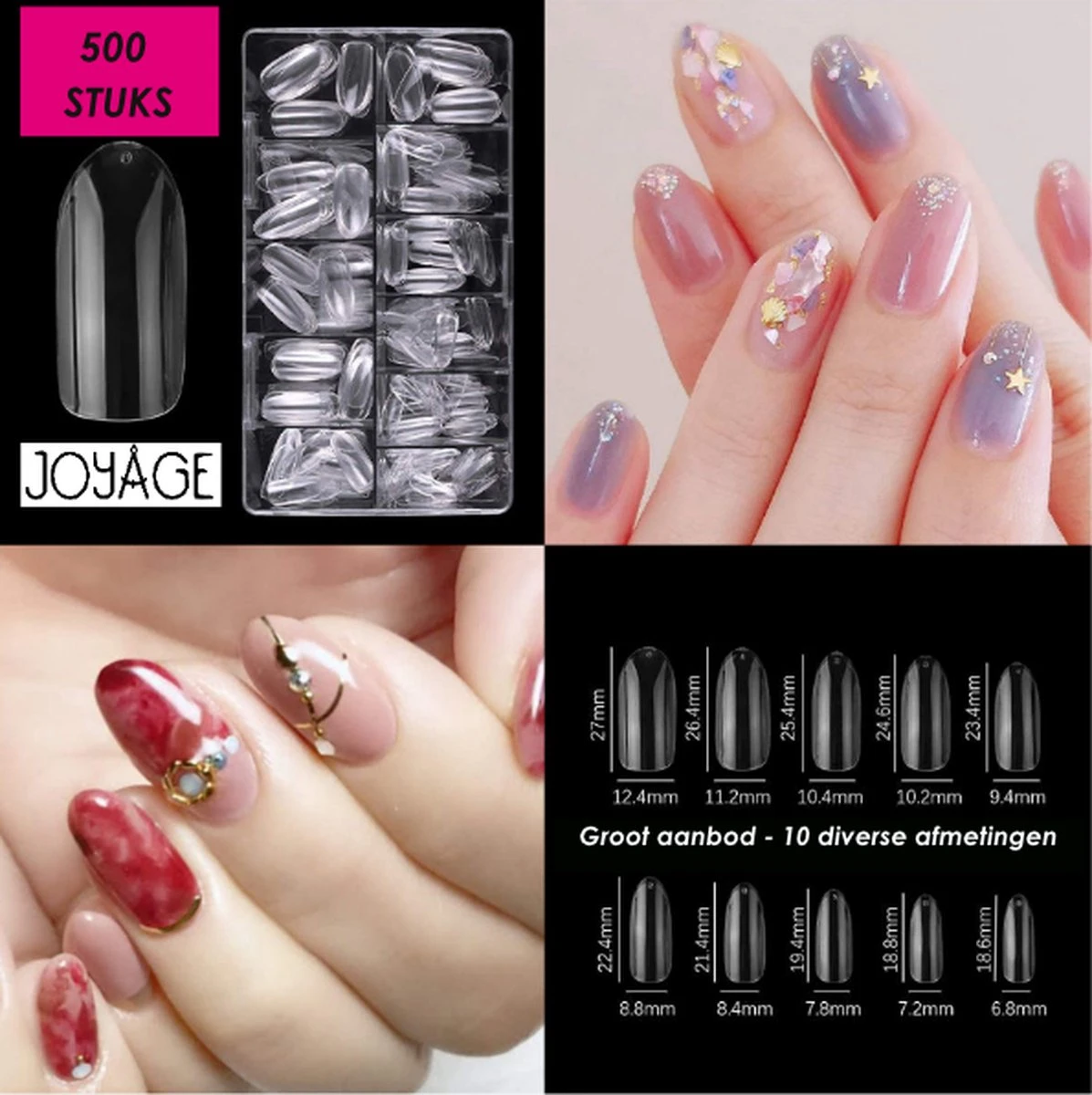 Op zoek naar een groot aanbod nageltips in verschillende maten voor het creëren van de perfecte kunstnagels? Met deze 500 stuks transparante Oval full cover nagel tips van het merk Joyage heb je ineens alles wat je nodig hebt om aan de slag te gaan, en dat in een handige en overzichtelijke opbergbox.