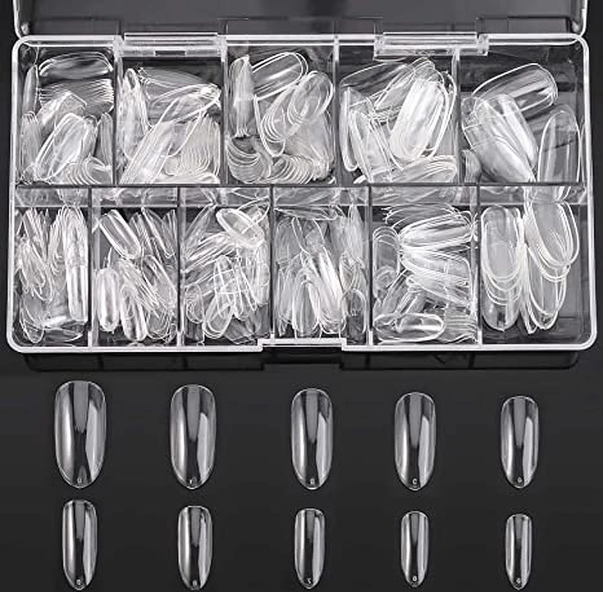 HOOGWAARDIGE MATERIALEN: Oval full cover transparante nageltips maken gebruik van hoogwaardige ABS-materialen, die veilig en milieuvriendelijk zijn en geen geur hebben. Deze stevige nepnagels met halve dekking hebben een perfecte lengte en dikte, en als je denkt dat de lengte van de nagels te lang voor je is, kun je deze knippen