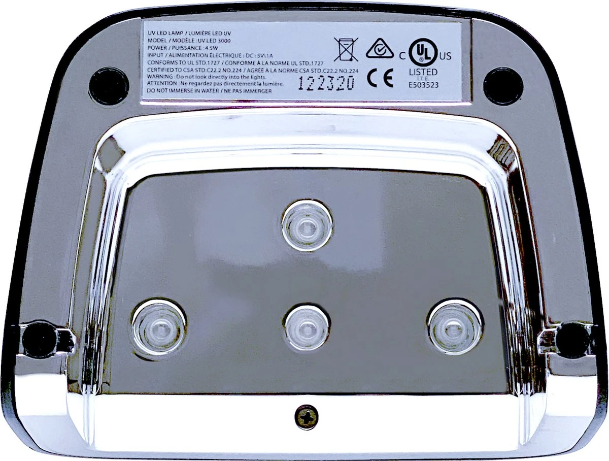 Let erop dat je je nagels niet te ver onder de LED-lamp houdt maar goed onder het blauwe LED gedeelte. Beweeg je vingertoppen iets omhoog in de LED-lamp, zo weet je zeker dat elk gedeelte van de lak goed uithardt.